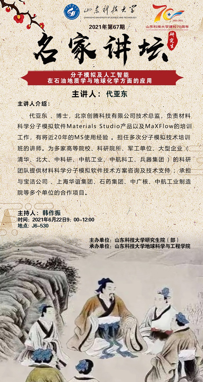 “名家讲坛”2021年第67期:分子模拟及人工智能在石油地质学与地球化学方面的应用(总705期)