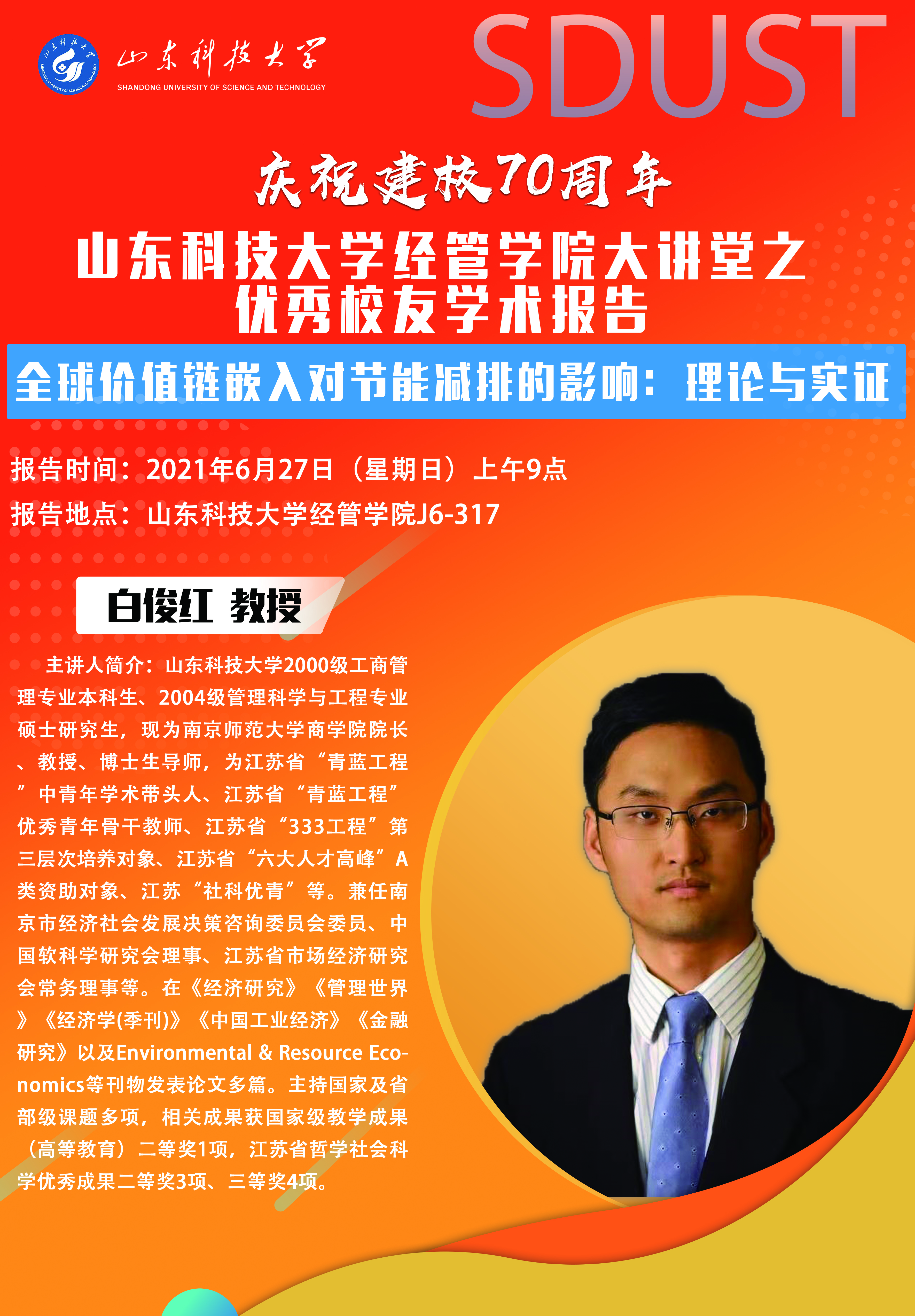 喜迎建校70周年华诞 36365线路检测中心入口经管学院大讲堂