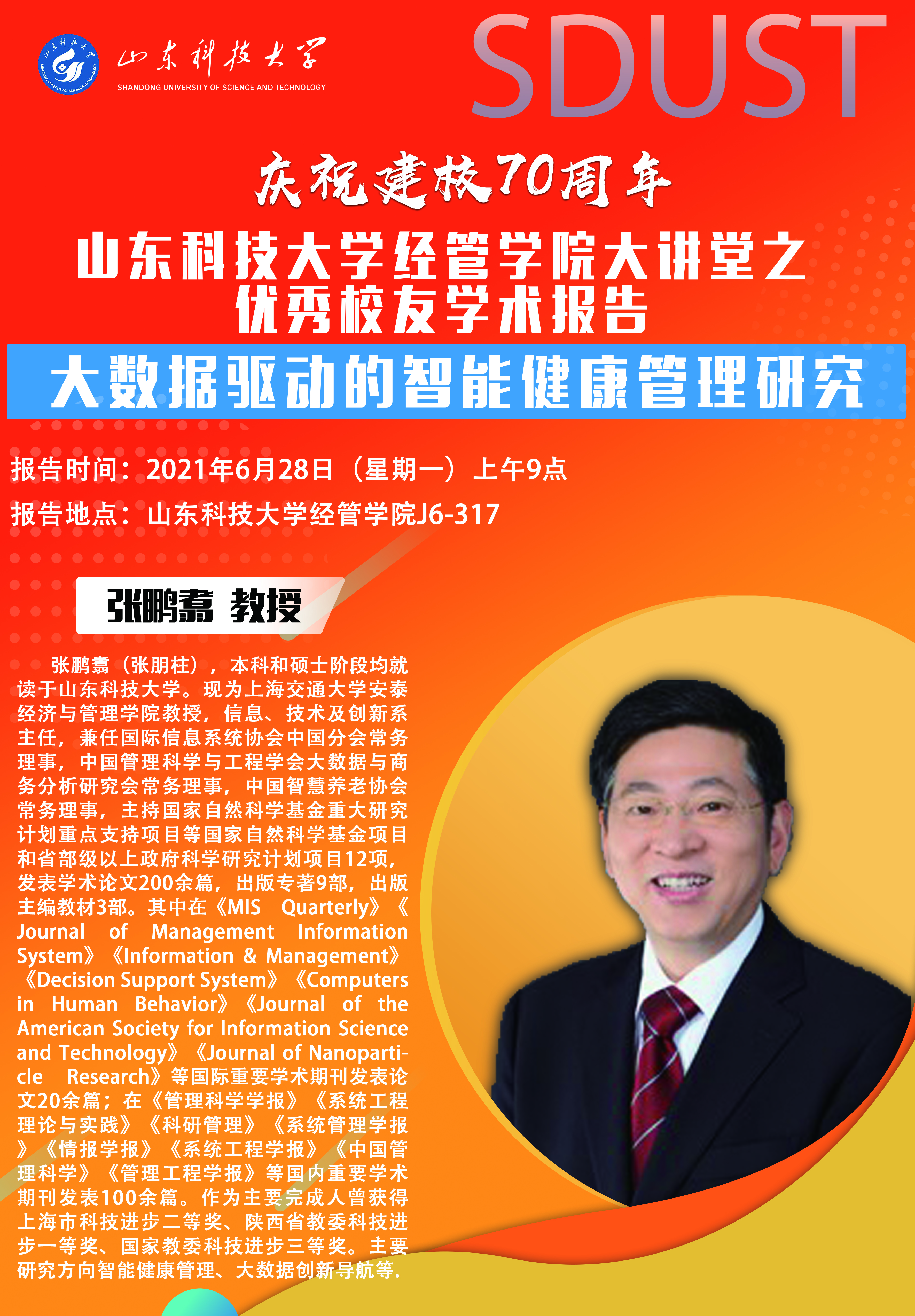 喜迎建校70周年华诞 36365线路检测中心入口经管学院大讲堂