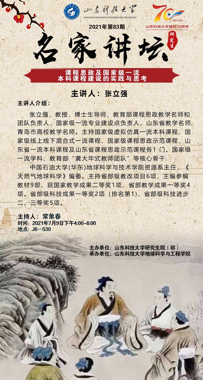 “名家讲坛”2021年第83期:课程思政及国家级一流本科课程建设的实践与思考(总721期)