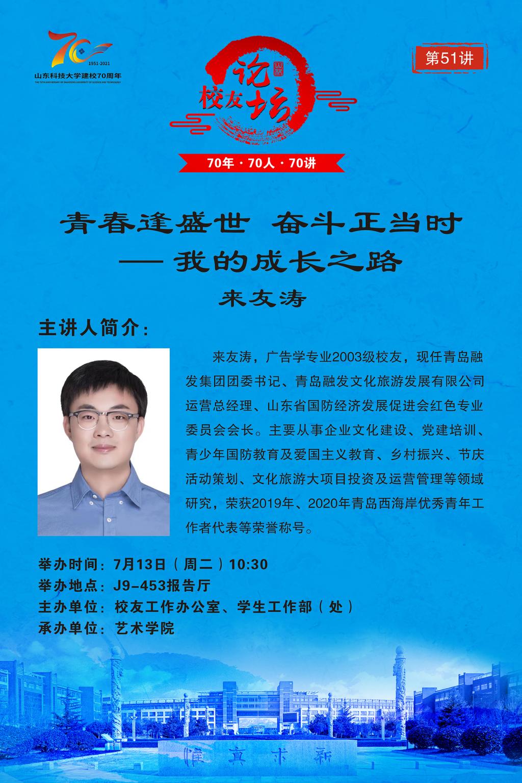 “70年·70人·70讲”校友论坛第51讲:青春逢盛世 奋斗正当时——我的成长之路