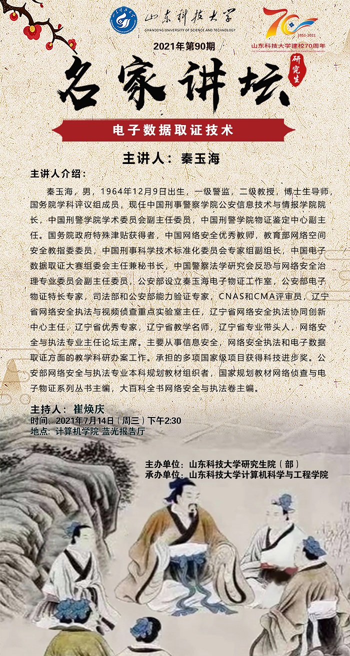 “名家讲坛”2021年第90期:电子数据取证技术(总728期)