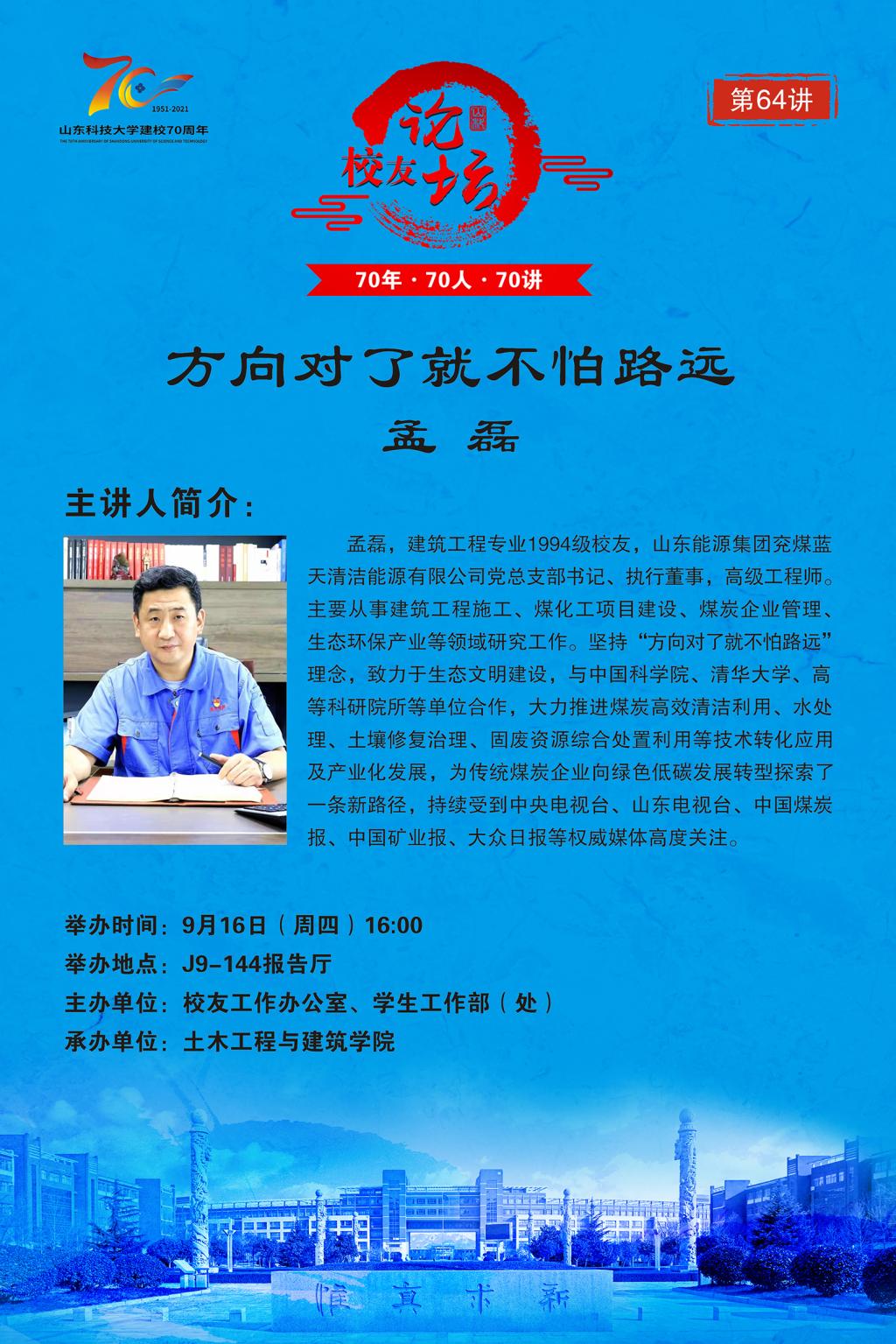 “70年·70人·70讲”校友论坛第64讲:方向对了就不怕路远