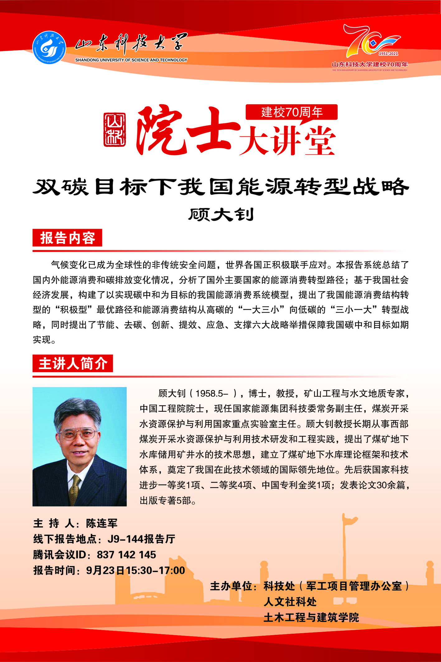 建校70周年院士大讲堂——双碳目标下我国能源转型战略