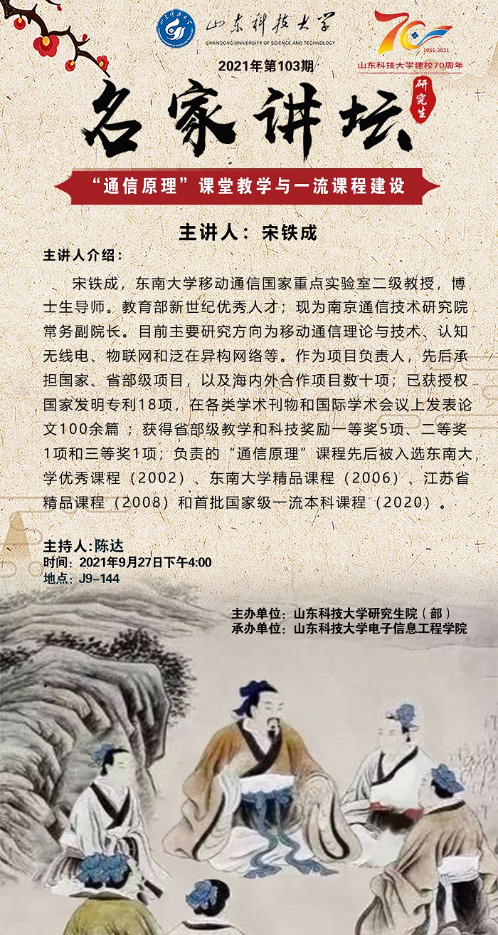 “名家讲坛”2021年第103期:“通信原理”课堂教学与一流课程建设(总741期)