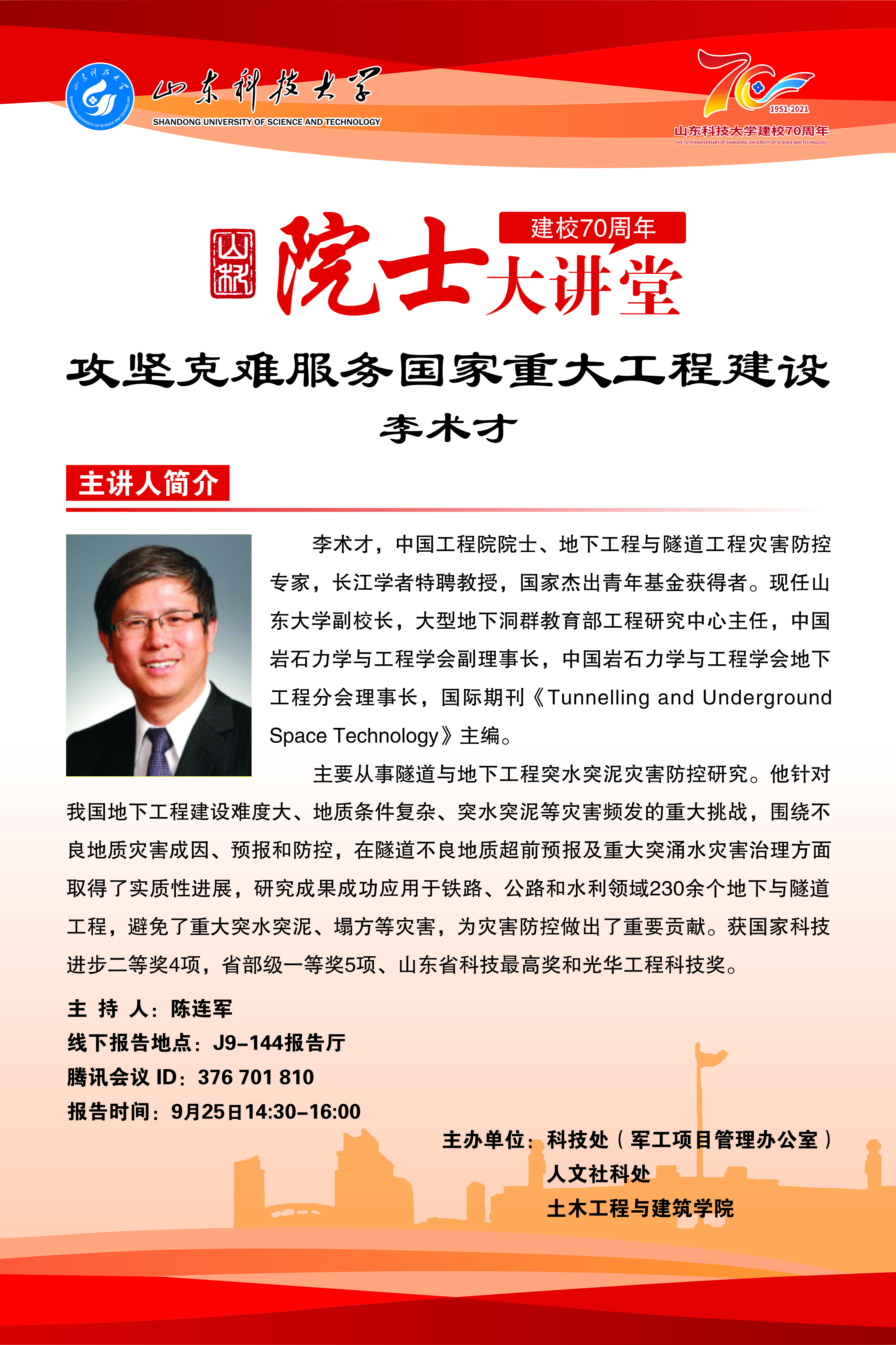 建校70周年院士大讲堂——攻坚克难服务国家重大工程建设