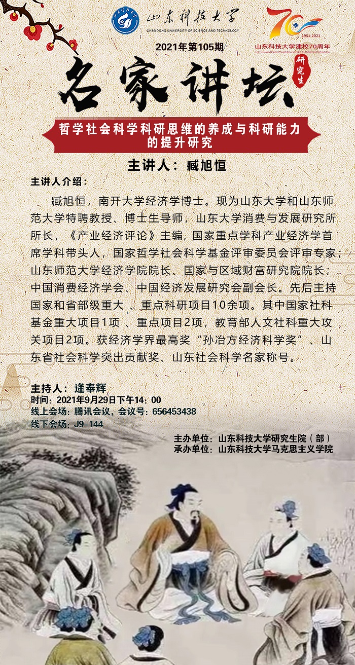 “名家讲坛”2021年第105期:哲学社会科学科研思维的养成与科研能力的提升研究(总743期)