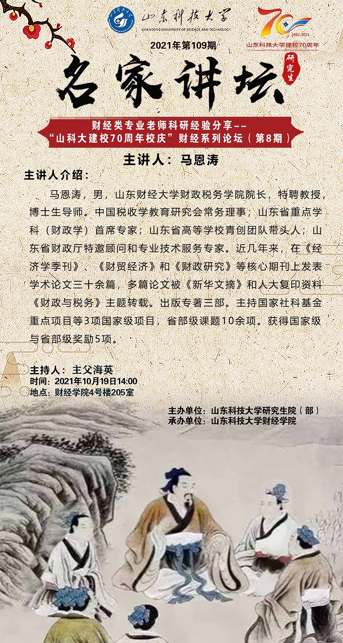 “名家讲坛”2021年第109期:财经类专业老师科研经验分享——“山科大建校70周年庆”财经系列论坛(第8期)(总747期)