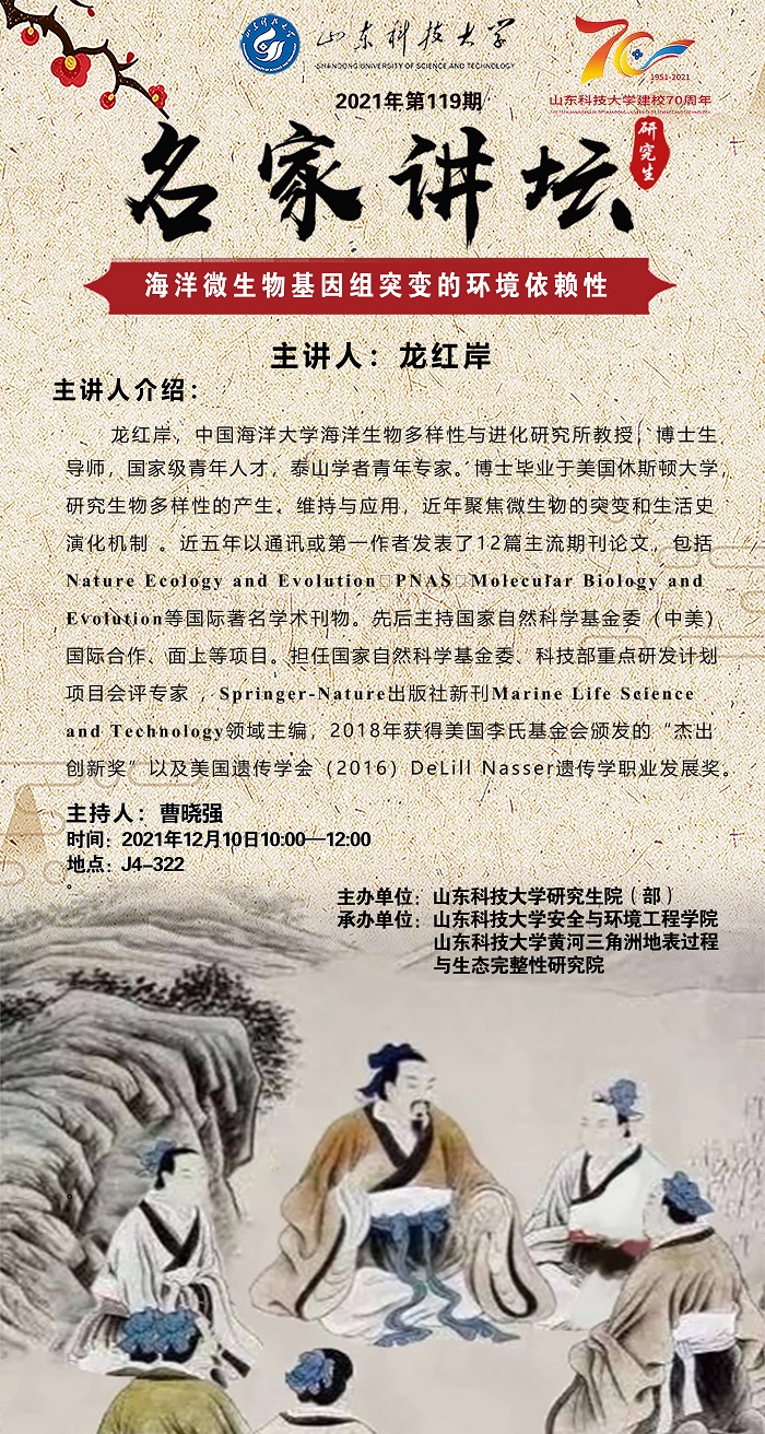 “名家讲坛”2021年第119期:海洋微生物基因组突变的环境依赖性(总757期)