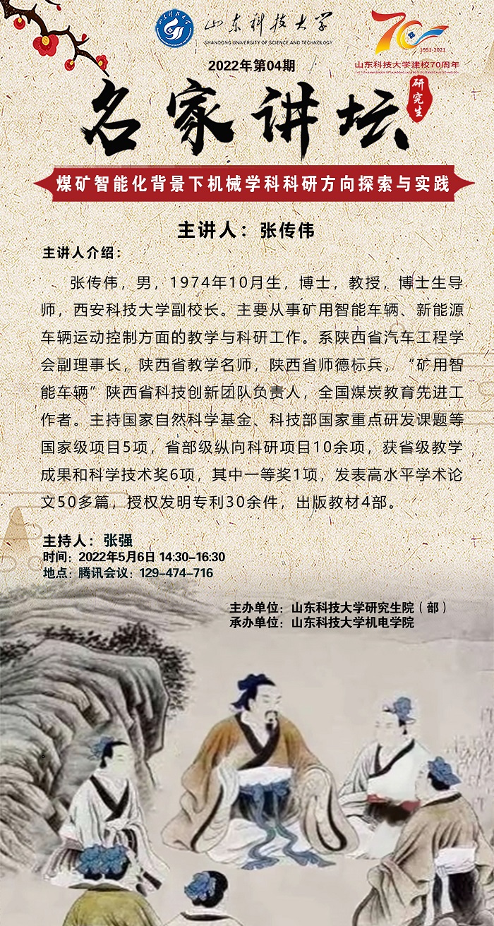 “名家讲坛”2022年第4期:煤矿智能化背景下机械学科科研方向探索与实践(总769期)