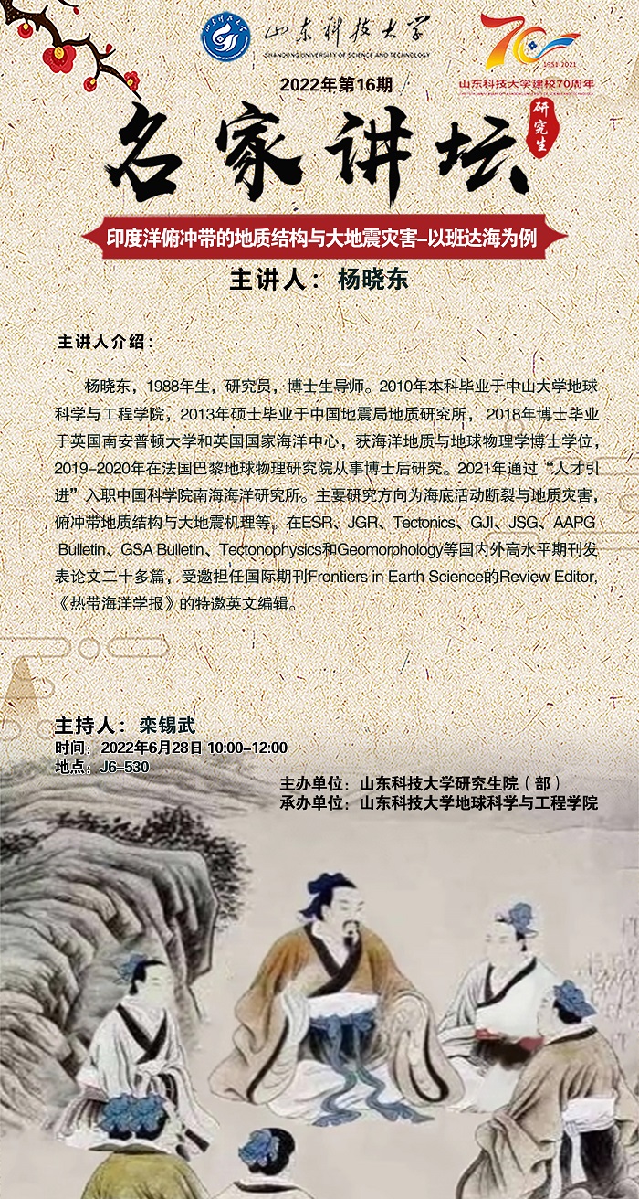 “名家讲坛”2022年第16期:印度洋俯冲带的地质结构与大地震灾害—以班达海为例(总781期)