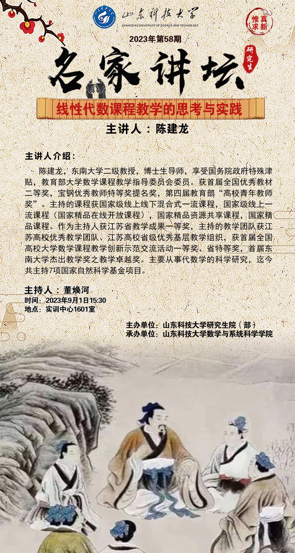 “名家讲坛”2023年第58期:线性代数课程教学的思考与实践(总859期)