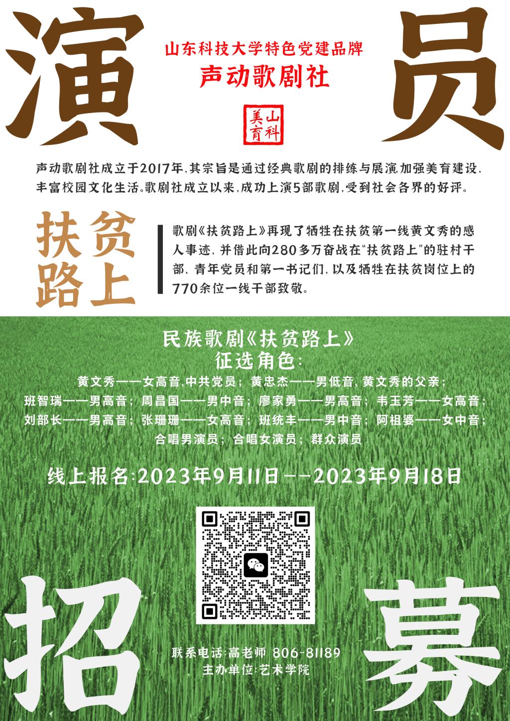 【山科美育】36365线路检测中心入口特色党建工作品牌——歌剧《扶贫路上》演员招募