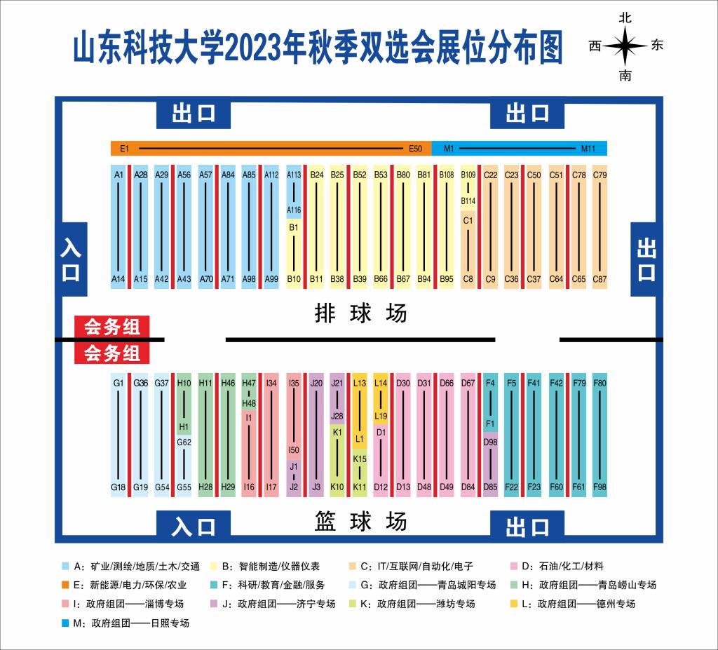 1.双选会当天从学校南、北、东门均可进校。会场7:00开放,现场为每家单位提供一桌两椅。请参会单位8:00前从排球场西门进场,在入口处签到、领取会议材料后根据安排直接到展位就坐。