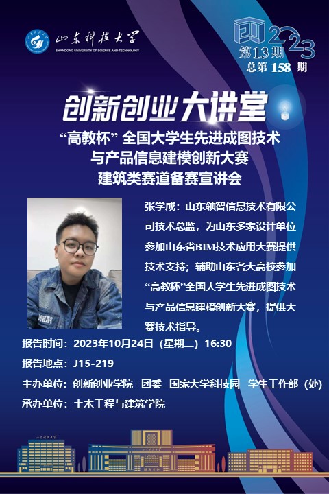 创新创业大讲堂2023年第13期:“高教杯” 全国大学生先进成图技术与产品信息建模创新大赛建筑类赛道备赛宣讲会