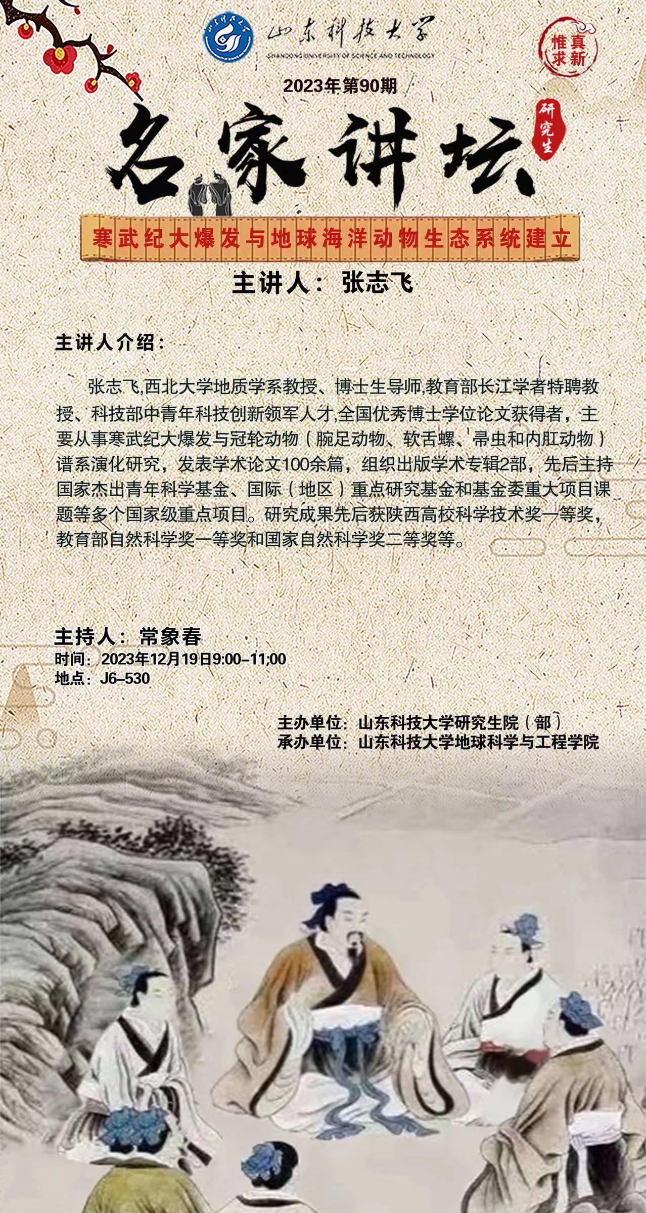 “名家讲坛”2023年第90期:寒武纪大爆发与地球海洋动物生态系统建立(总891期)