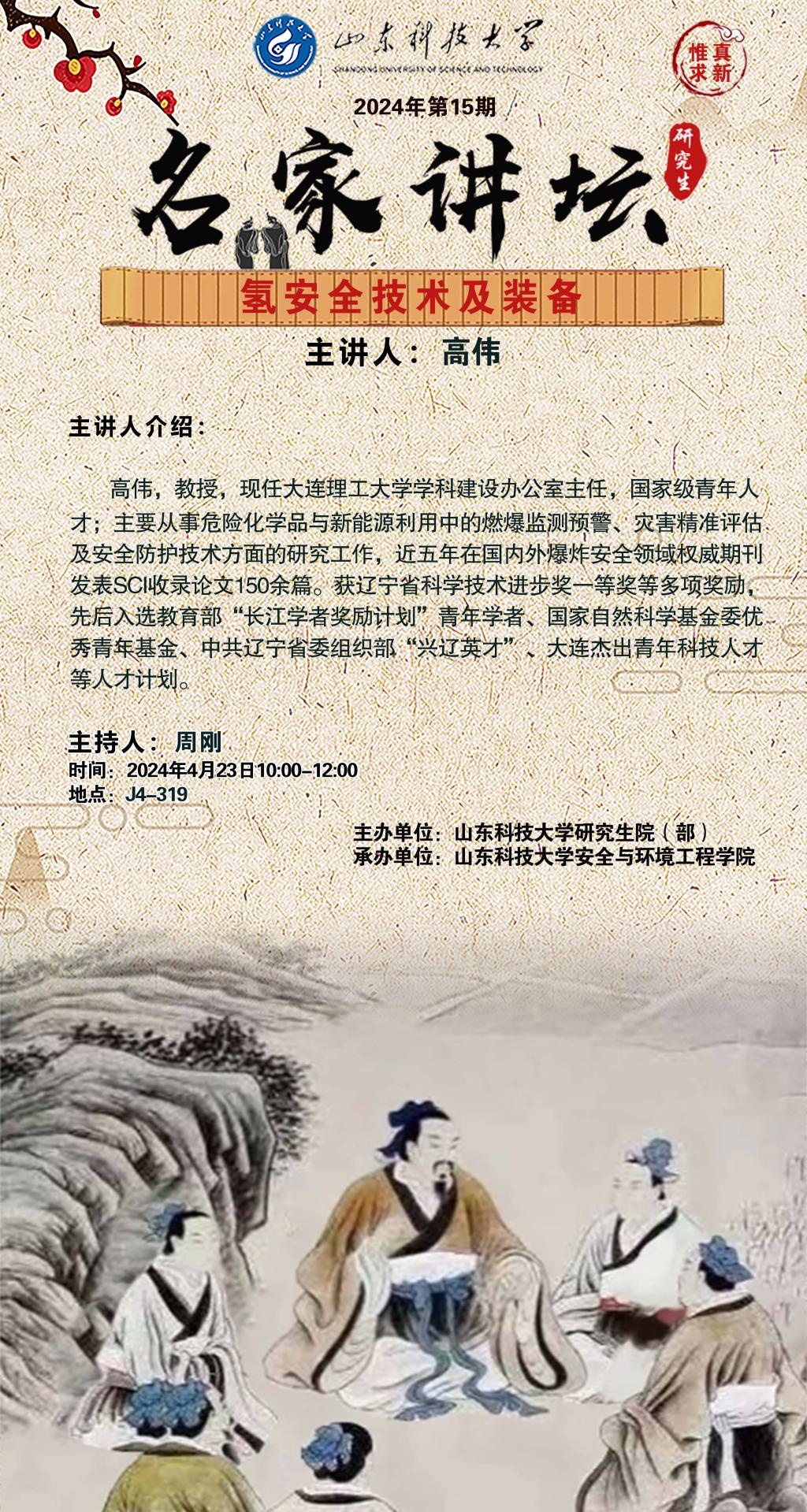 “名家讲坛”2024年第15期:氢安全技术及装备(总909期)